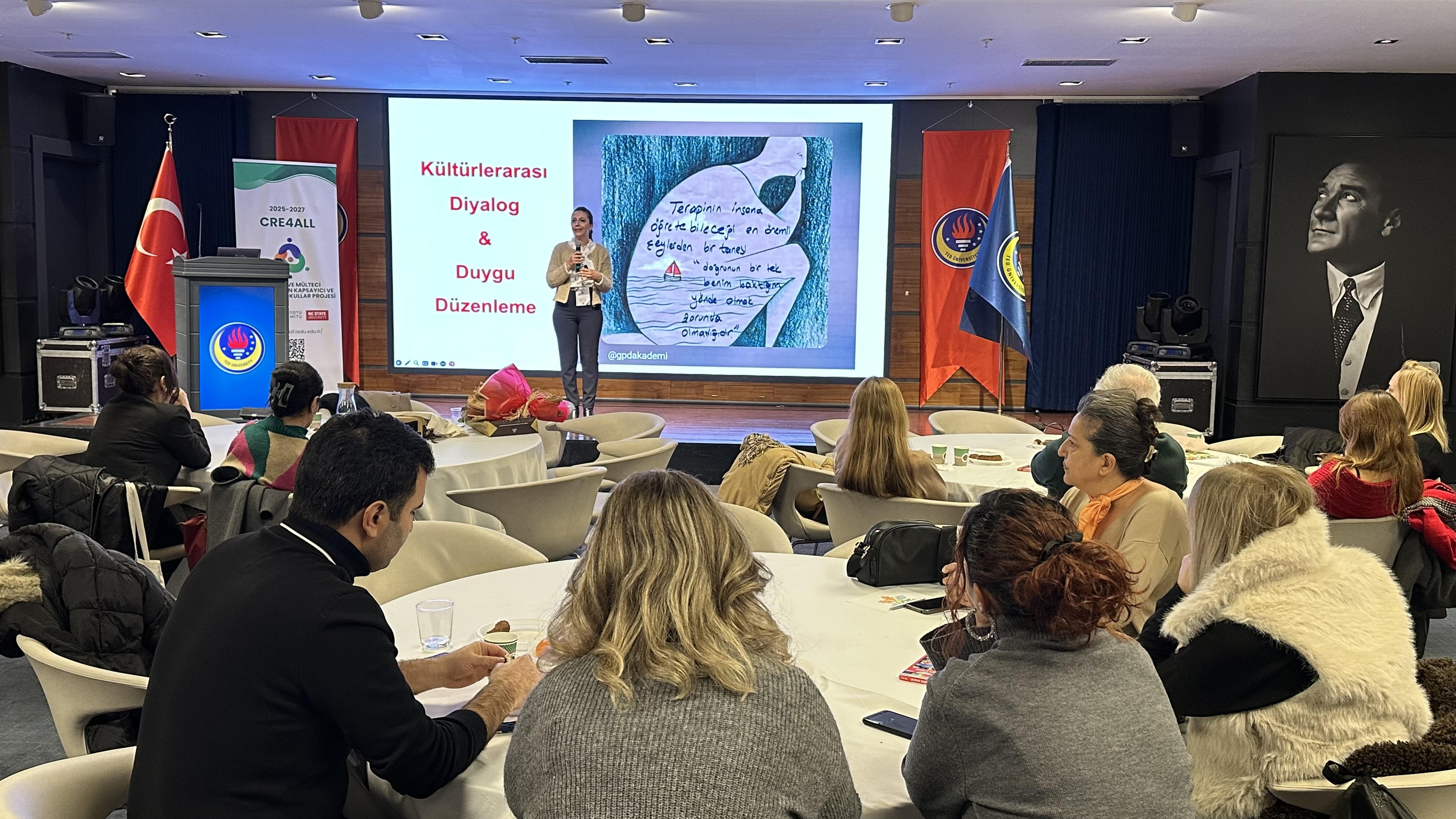 Akın-Sabuncu’nun yürütücülüğünde yürütülen Kültüre Duyarlı Okullar (CRE4ALL: https://cre4all.tedu.edu.tr/) Projemizin 5. Eğitim Oturumunu Ankara’daki 30 ilkokuldan katılan sınıf öğretmenleri, okul psikolojik danışmanları ve okul yöneticilerinin katılımıyla 2025 yılının son oturumunda coşkuyla buluşarak gerçekleştirdik!